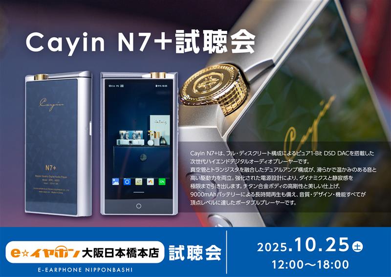 ぜひ当日は Cayin の最新ハイエンドデジタルオーディオプレーヤー「N7+」をe☆イヤホン大阪日本橋本店でお楽しみください!