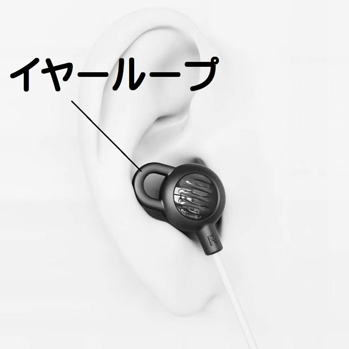 ボディに一体デザインされたイヤーループが小さなイヤホンをしっかりと耳に固定。 取り外し時もイヤーループを摘んで、簡単に取り外せます。