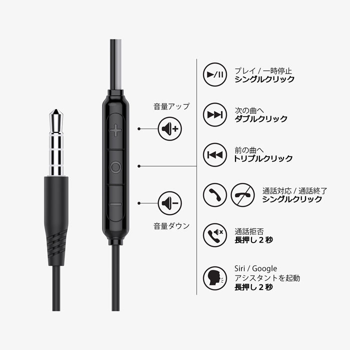 胸元のコントローラーで音量調節、曲送り、通話管理、音声アシスタント起動が可能。 デバイスまで手を伸ばす必要はありません。