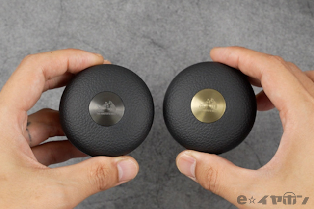 充電ケースは上面にメタルが採用されていて、楽器のケースをモチーフにした革のテクスチャーが施されています。