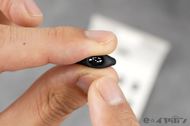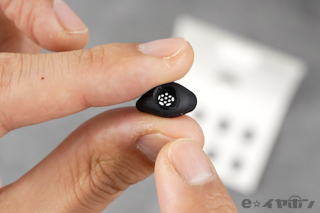 イヤホンへの、埃や耳垢の侵入を防ぐフィルターは柔らかい素材で作られていました。細かいポイント出すけど、こういった部分も装着感の向上につながる部分ですね。
