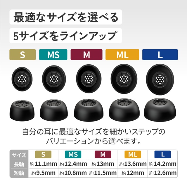 - イヤーピース S/MS/ML/L 各2個(Mは本体に装着)