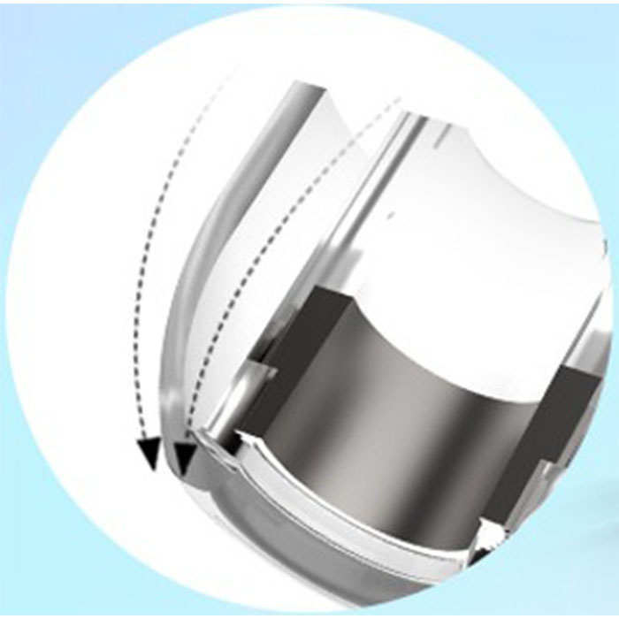 耳に触れる部分に向かうほど傘部シリコンの厚みが薄くなる、独自のテーパード型構造設計を採用しています。