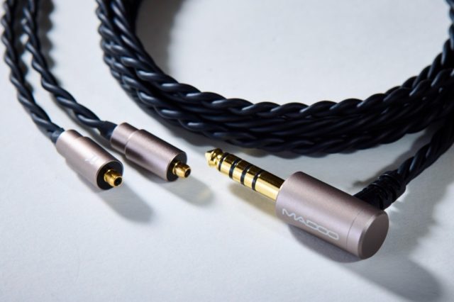 このケーブルは中低音の安定感、接地感、質感に特徴を持った音質傾向にあり、片側7芯からなるケーブルを2本撚ることで1本のケーブルとしています。