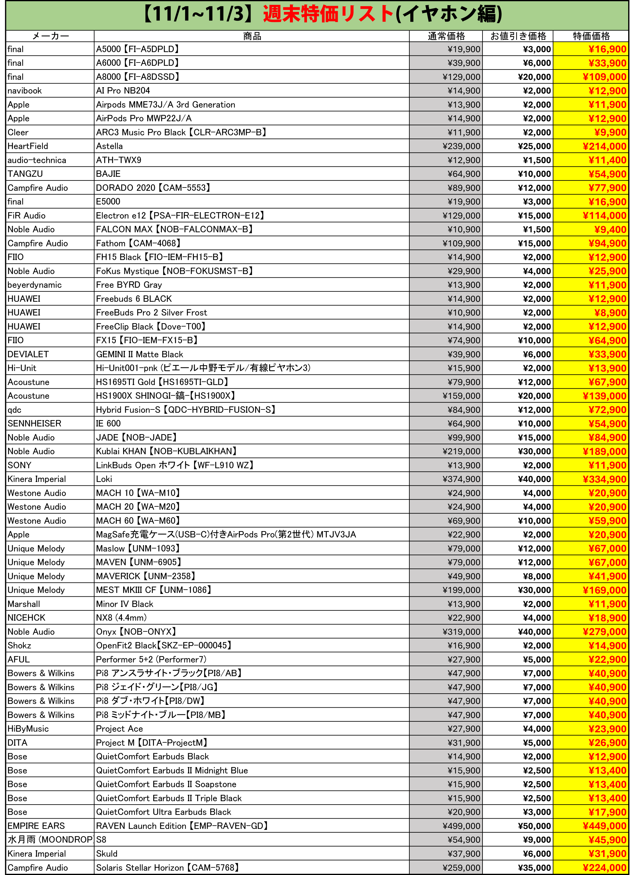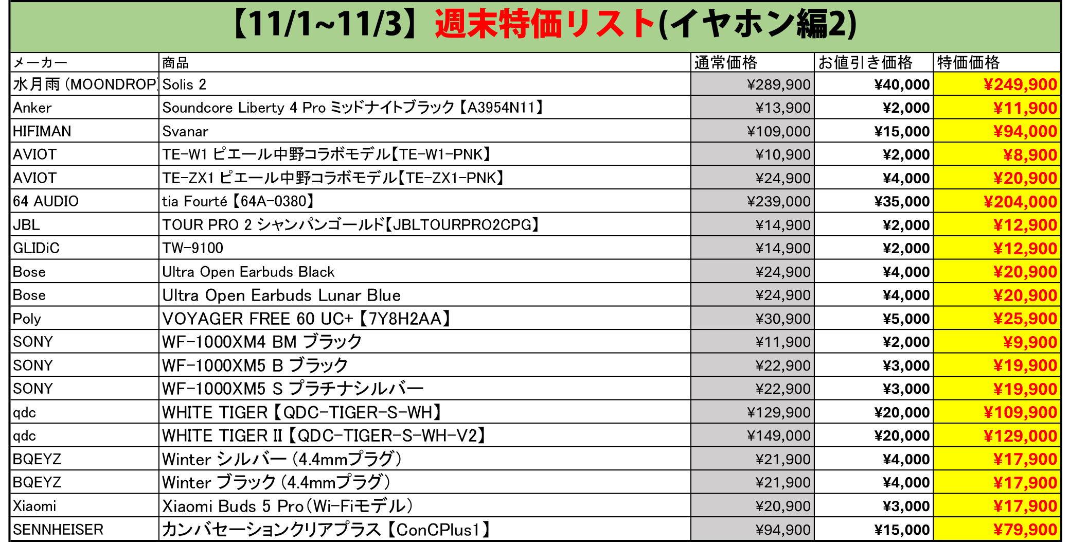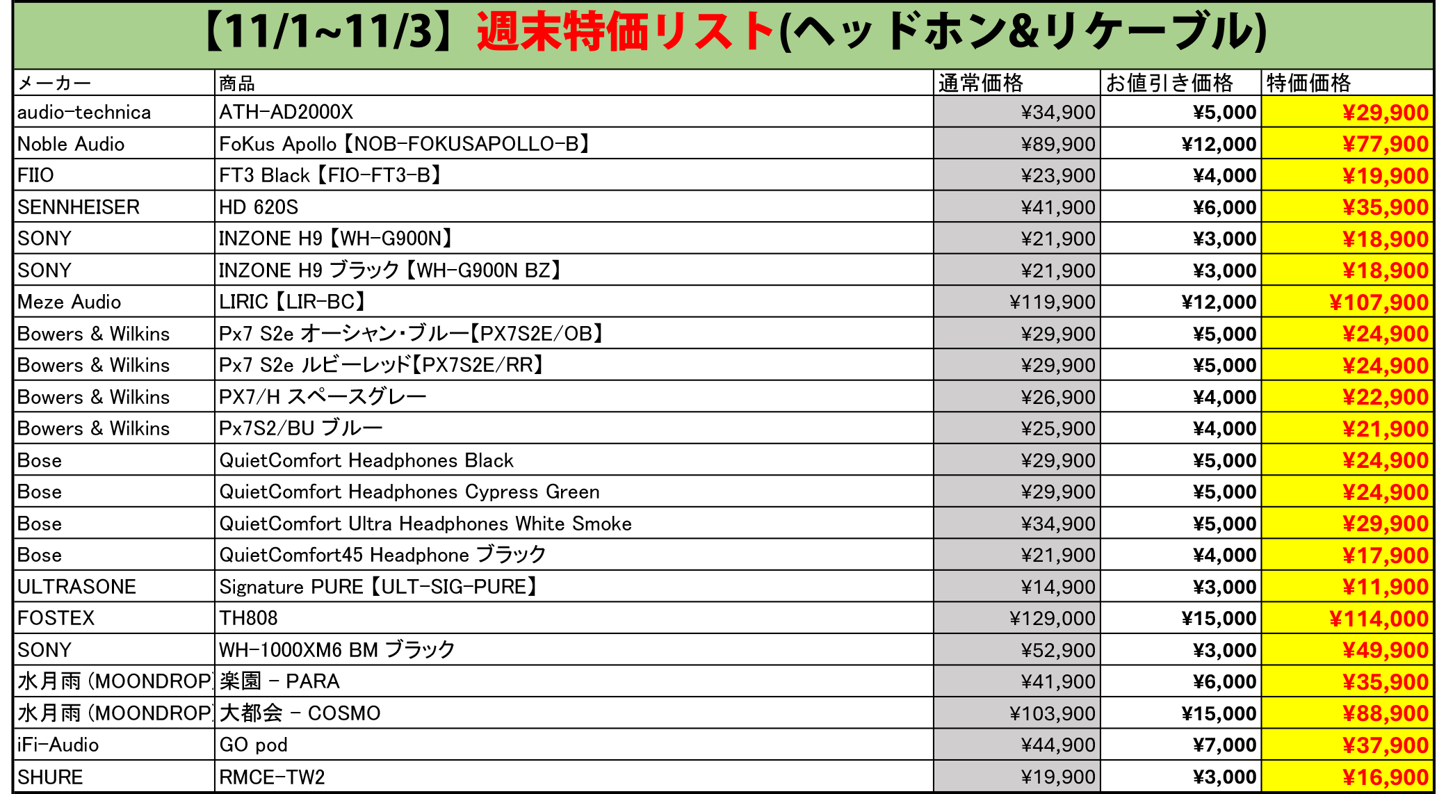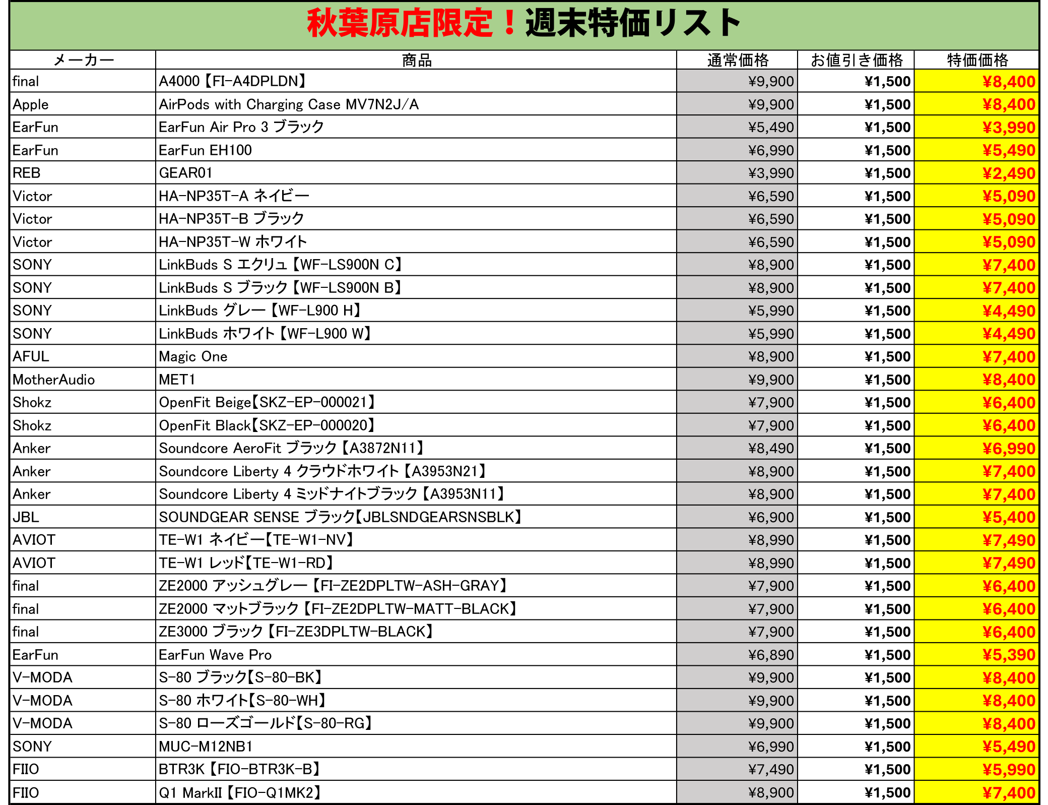 今週もe☆イヤホンの中古週末特価を開催!お得な製品が盛り沢山な内容でお送りします