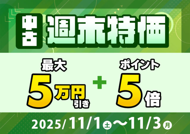 今回は店頭のみの対象となっております!今回は祝日を含め3日間の開催となっているのでゆっくりお選び頂けますよ!
