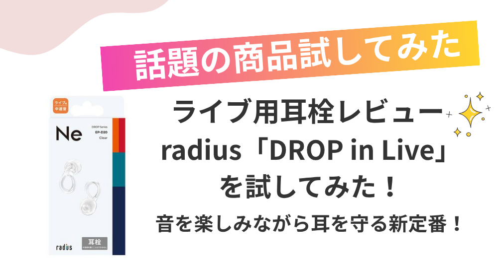 「DROP in Live」は、オーディオブランドradius(ラディウス)が手がける“ライブ専用”の耳栓。音響メーカーらしく、単なる「遮音」ではなく“音を楽しむための耳栓”として開発されています。