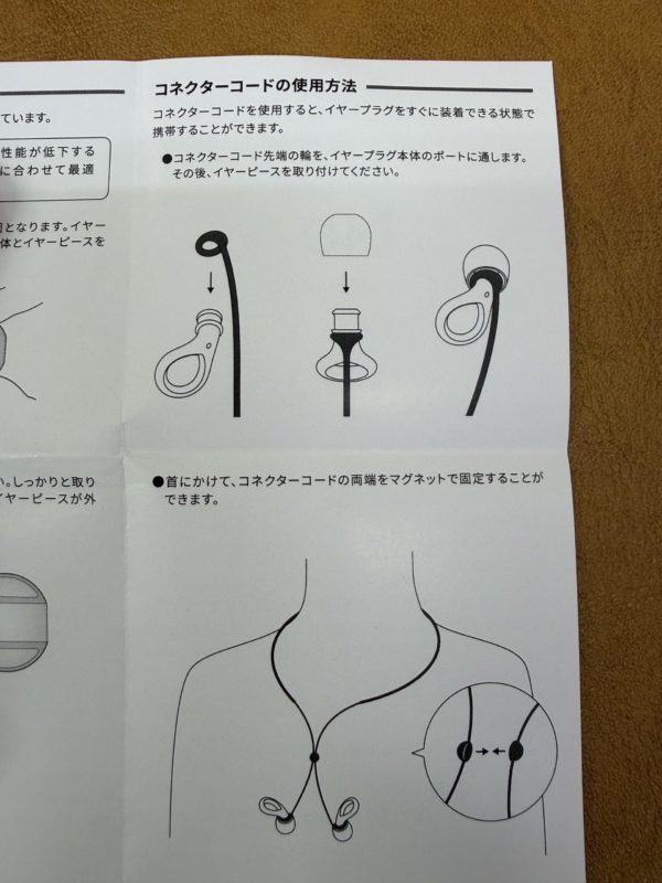そして地味にうれしいのが、コネクターコード付きなところ!首から掛けておけるので、ライブや移動中でも紛失しにくいのが助かります。マグネットで左右がくっつく仕様になっていて、収納や持ち運びもラクでした。