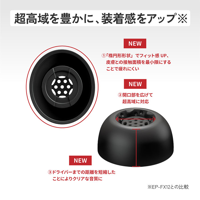 楕円形状を新採用、耳穴にフィットしやすく、ストレスの少ない装着感を実現