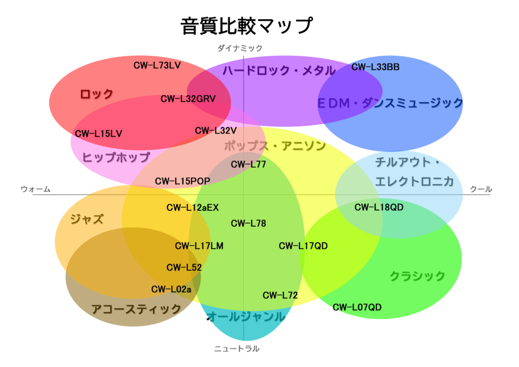 姉妹モデル「CW-L17QD」「CW-L17LM」と同じクアッドドライバ構成をベースにしつつ、高域用ドライバを刷新することで中高域のさらなるワイドレンジ化を実現しました。