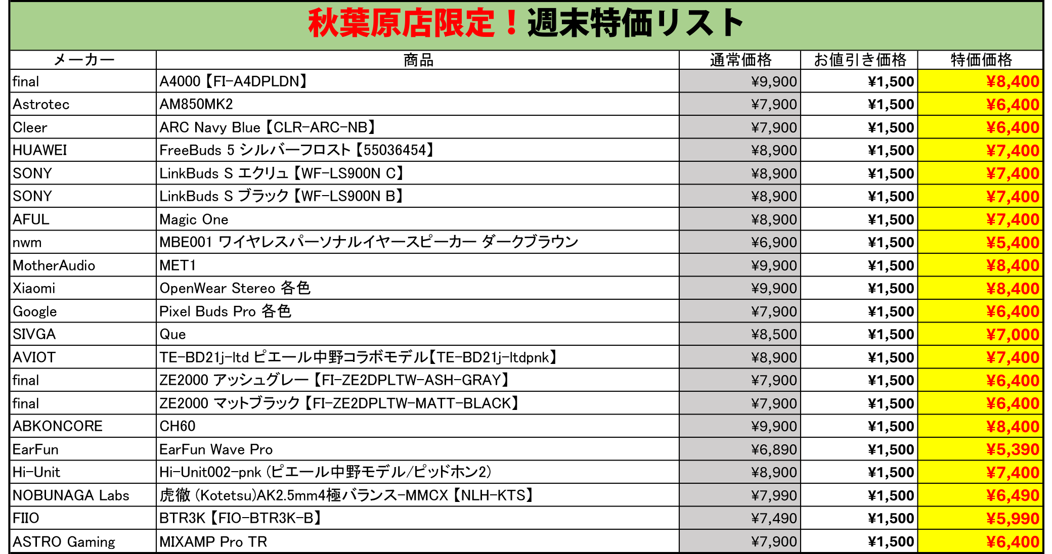 秋葉原店限定特価も開催!