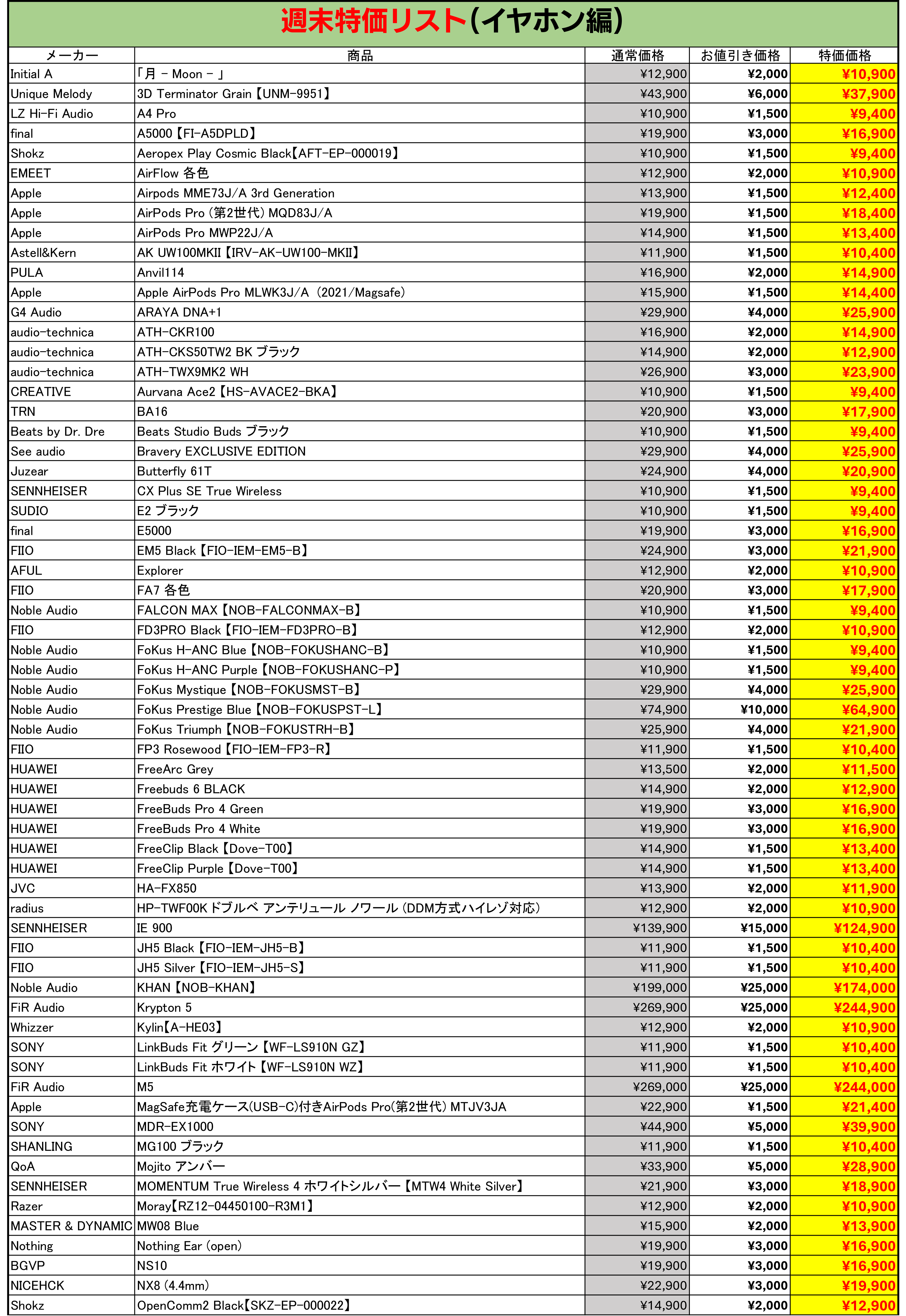 今週もe☆イヤホンの中古週末特価を開催!お得な製品が盛り沢山な内容でお送りします