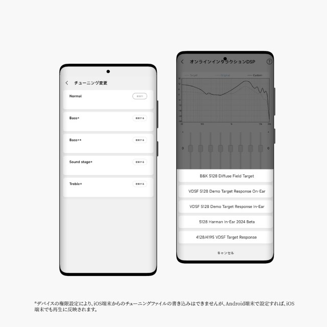 *デバイスの権限設定により、iOS端末からのチューニングファイルの書き込みはできませんが、Android端末で設定すれば、iOS端末でも再生に反映されます。