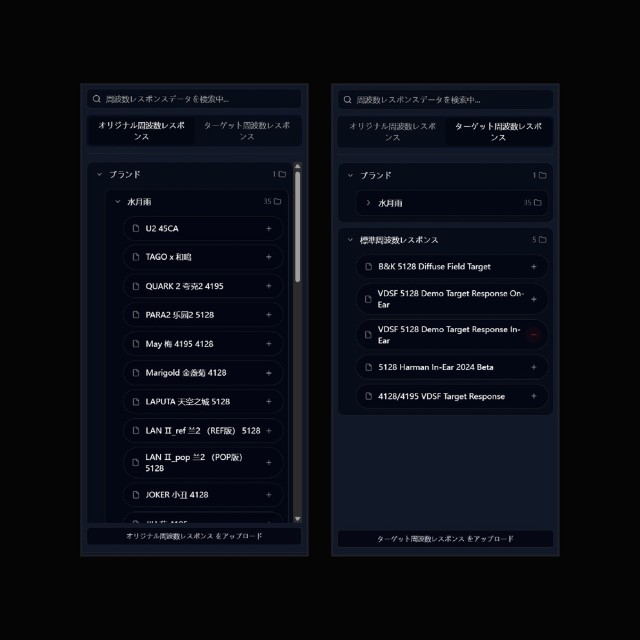 Marigold(マリーゴールド)は「新しい専門的な可視化チューニングプラットフォーム」において、豊富な周波数特性ライブラリを内蔵しており、ユーザーはこれを目標周波数特性として直接調整に使用できます。