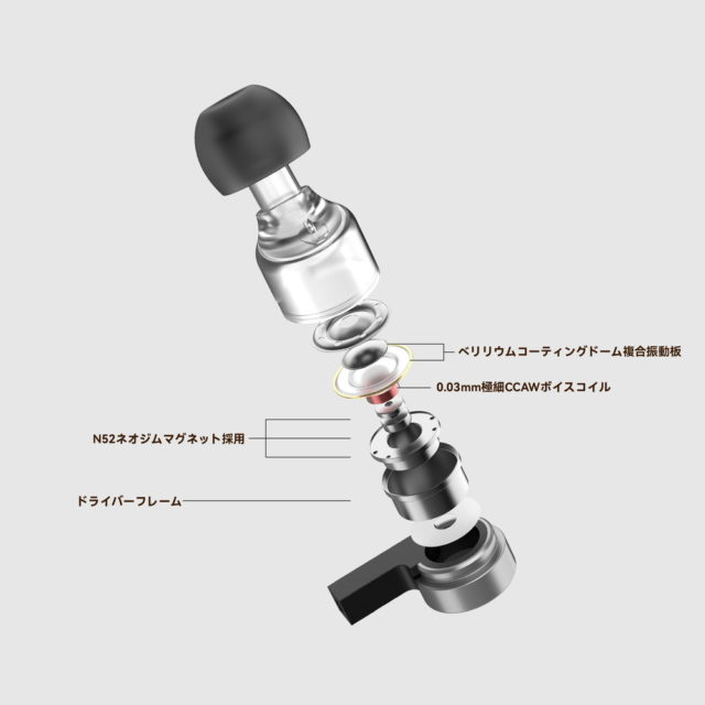 | ドライバー構成 | 10mmデュアルチェンバー高性能ダイナミックドライバー |