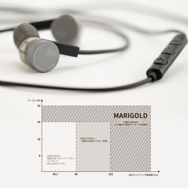 Marigold(マリーゴールド)はUSBサウンドカードチップを内蔵し、32Bit/384kHzのハイレゾ音源のハードウェアデコードに対応。