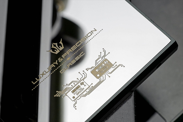 DACアナログ部へは独立電源回路を多数配置し、ノイズを徹底的に低減。PCM1792Aとレーザー刻印された鏡面は美しく所有する喜びを与えます。