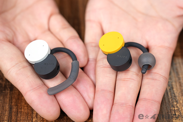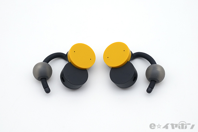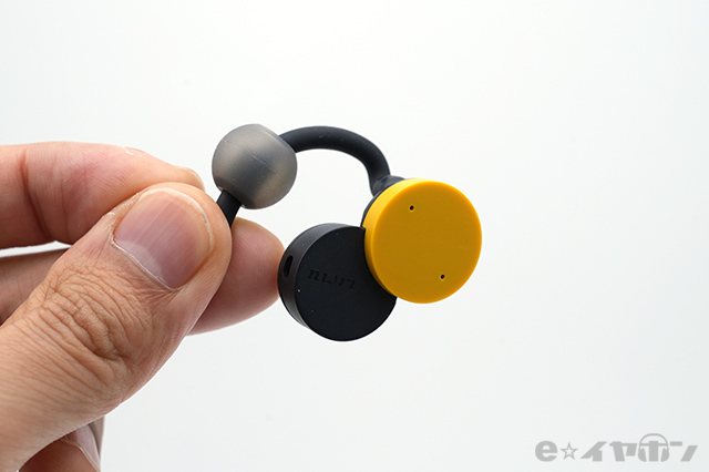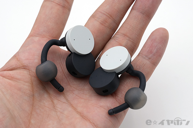 ケースから取り出すとこんな感じ。取り出しても「ワイヤレスイヤホン」といった感じは少なめですね。
