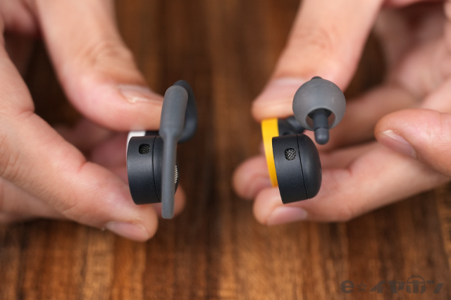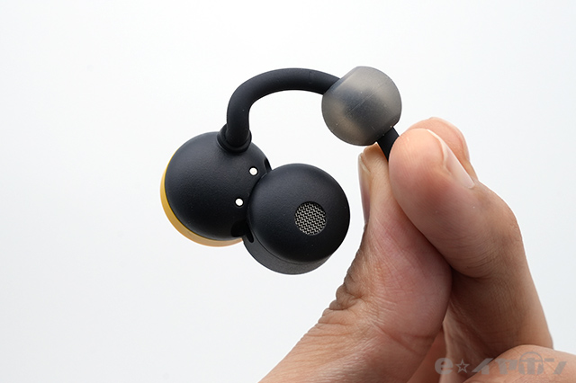 丸いイヤーピースのようなパーツは、装着感を調整する「テールチップ」