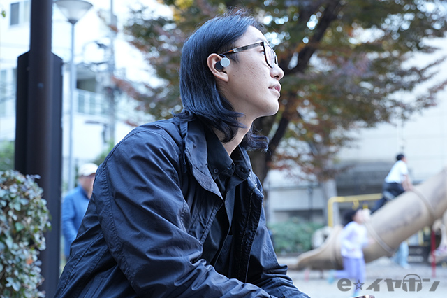 周囲の音が自然に聴こえるので、外で使うのもいい感じですね。周囲の音を遮断して音楽を楽しむのもいいですが、環境とミックスさせて聴く音楽もまたいいものです。
