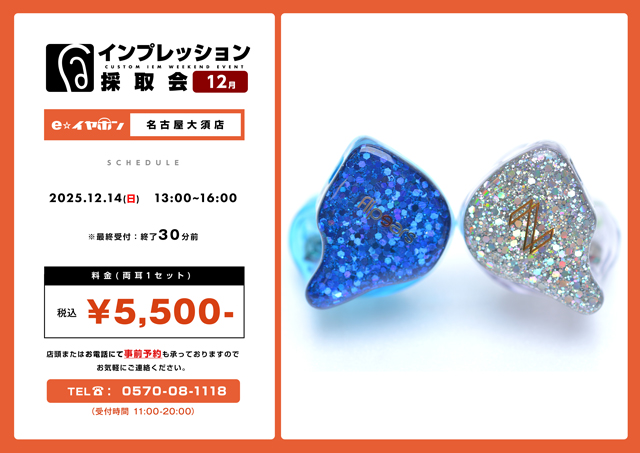 インプレッション(耳型)採取会の事前ご予約受付中ですのでお電話または店頭スタッフにお気軽にお声掛け下さい、ご予約お待ちしております♪