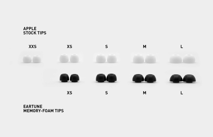*参考に、アップル純正シリコン製イヤーピースとのサイズ比較図を参照下さい