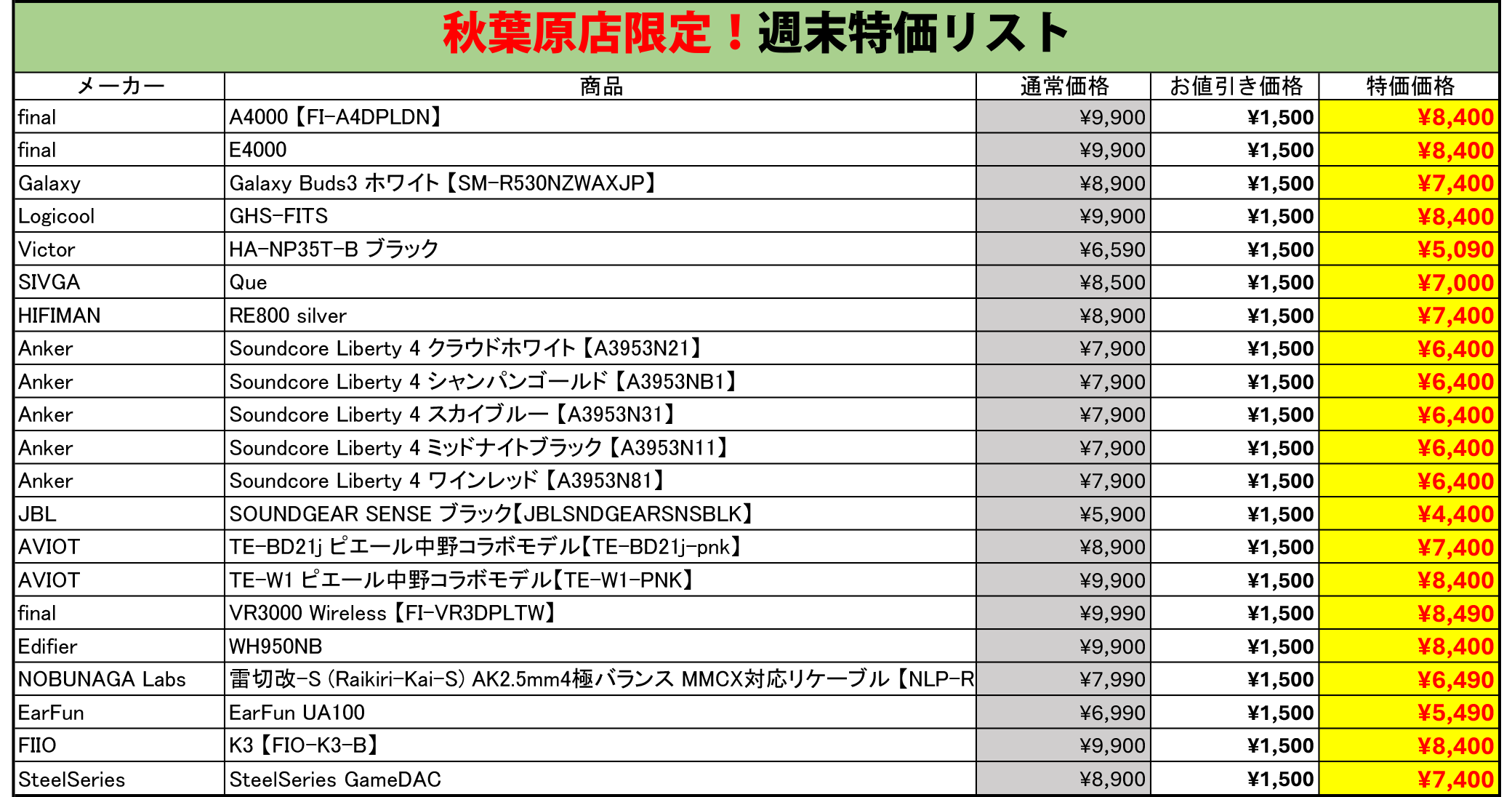 以上、お得なセール情報でした。e☆イヤホン リユース営業部のかわちゃんがお送りいたしました!