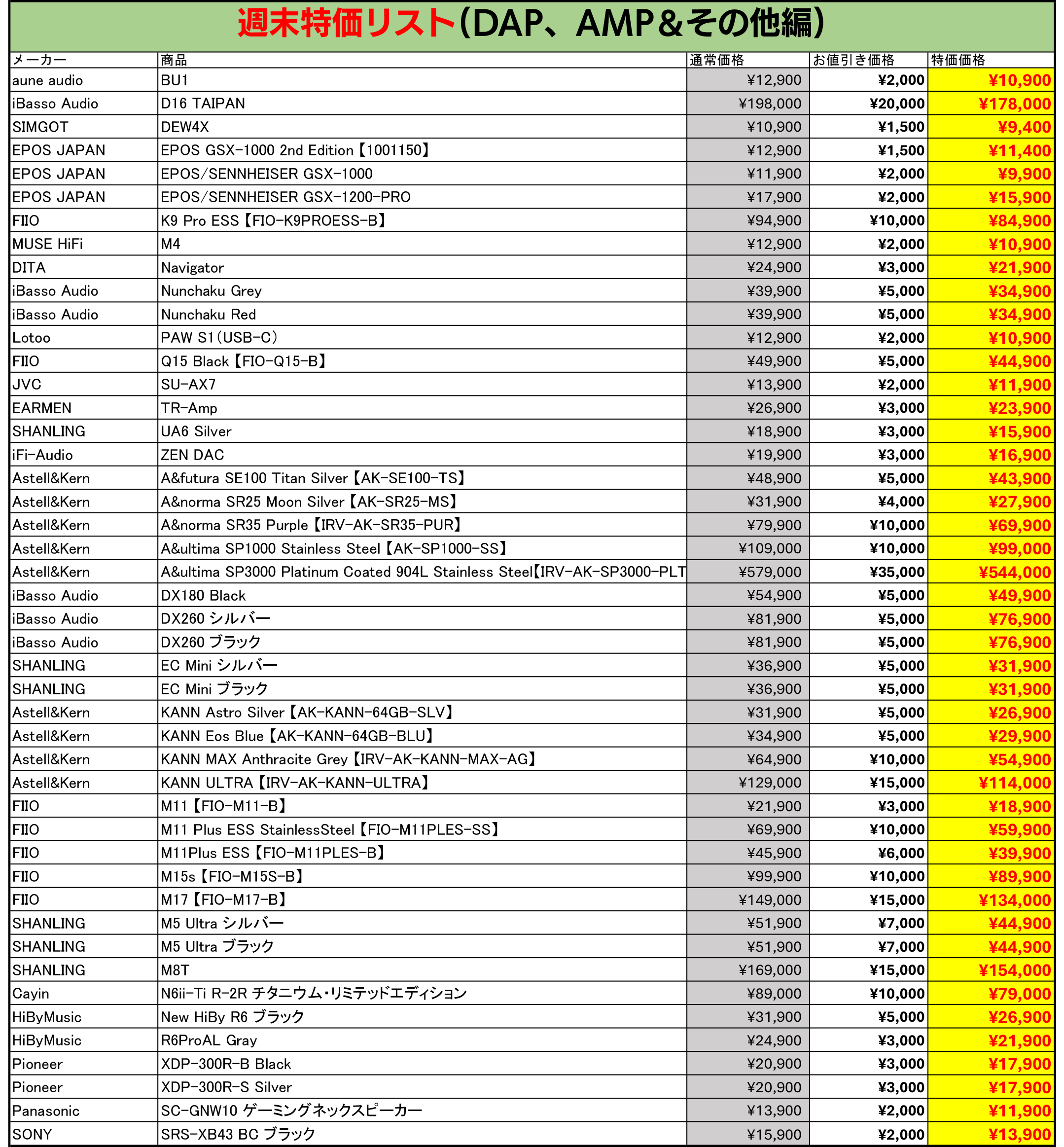 (従来の「週末特価」と「新品セール」の内容をまとめたページとなります。)