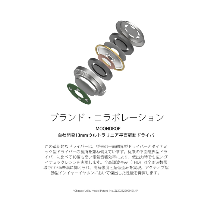 ドライバー:13mmプラナードライバー(MoonDrop独自開発ドライバー)