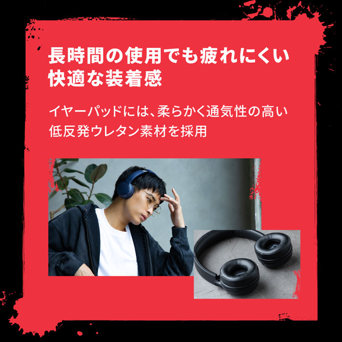 耳元に直接触れるイヤーパッドには、柔らかく通気性の高い低反発ウレタン素材を採用。