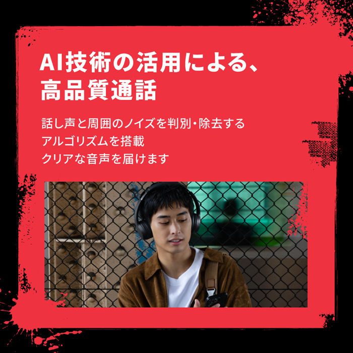 高品質通話用マイクの採用、そして、話し声と周囲のノイズを判別・除去するAI技術を活用したアルゴリズムの搭載により、クリアな音声を届けるハンズフリー通話を実現。通話相手へあなたの声をスムーズに届けます。