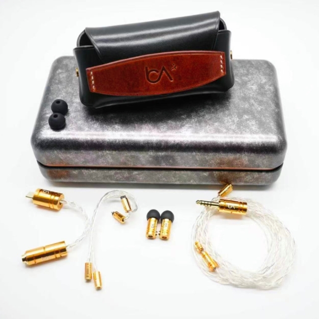 付属の金属キャリングケースには、上質な本革キャリングポーチ、MMCX to Custom 2pin 変換アダプター、そして Type-C to 4.4mm変換アダプターを一つに収納可能。
