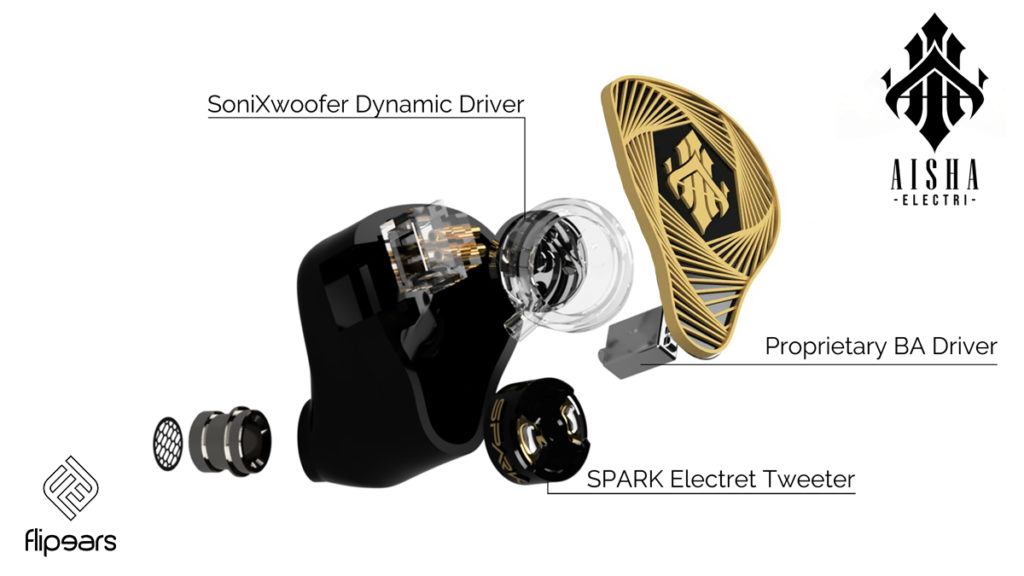 AISHA ELECTRIは、上位機種の技術を注ぎ込んだ独自のトライブリッド構成により、クラスを超えた一体感と「調和のシグネチャー」を実現しています。低域にはSoniXwooferを搭載し、タイトで質感豊かな重低音が楽曲の土台を強固に形成。中域は独自BAドライバーが担い、Flipears特有の艶やかで表情豊かなボーカル表現を可能にします。そして高域のSpark Electret tweeteが、歪みのない透明感と広がりある空気感を描き出します。これらが理想的なバランスで融合することで、長時間の使用でも聴き疲れしない自然な響きを構築。モニター用途から日々のリスニングまで、あらゆるシーンで没入感の高い音響体験を提供します。