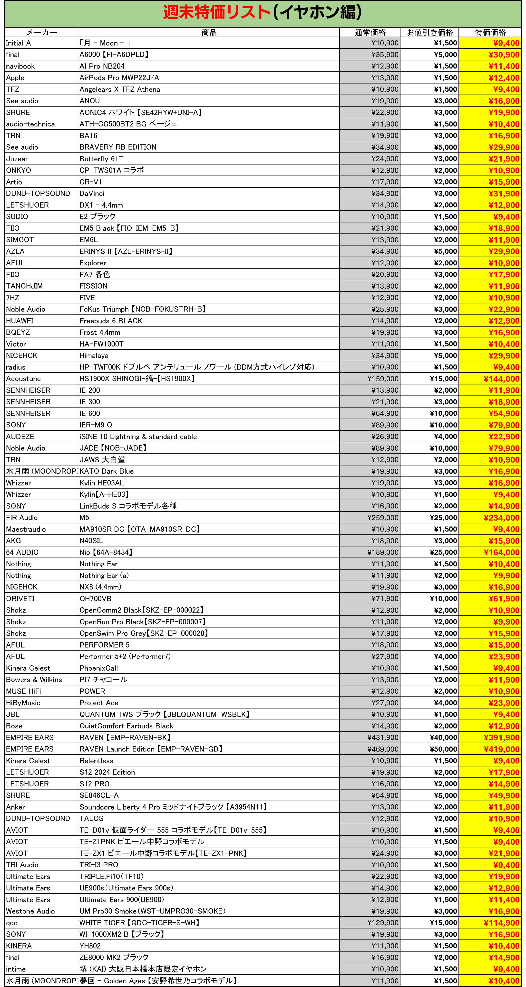 今週もe☆イヤホンの中古週末特価を開催!お得な製品が盛り沢山な内容でお送りします