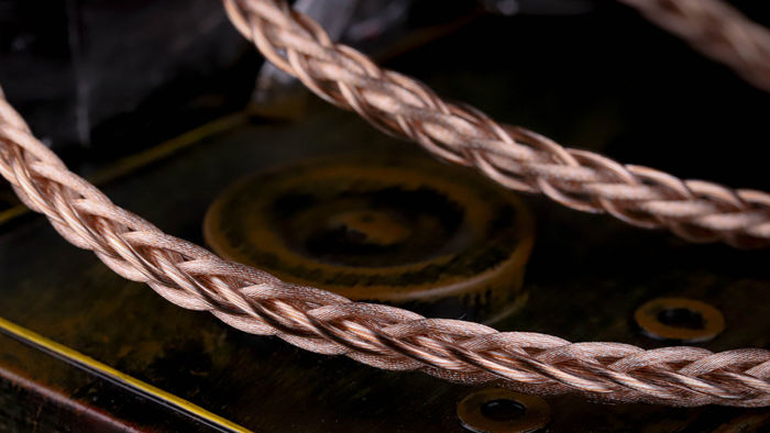 Elegy to Luciaは8芯構成の各芯内部に独自のDuoStrata™ジオメトリを施し、太さの異なるストランドを組み合わせた高分散マルチサイズ撚線構造を採用。これにより音場の拡大、定位の精密化、背景の静寂感を実現し、個別エナメル加工されたリッツ線が表皮効果や近接効果を最小化して、極めてクリーンで歪みの少ない信号伝送を可能にしています。さらにDual-Phase Purification(DPP)技術により各素材を二段階で精製し、不純物を徹底的に除去。信号劣化を大幅に防ぎ、ノイズフロアを20%以上削減することで、クリアで透明感のあるサウンドを実現しています。素材はそれぞれの役割を明確に持ち、オーケストラのように調和します。金銀プラチナパラジウム合金(GSPP)は空間的な奥行きと明瞭度を高め、金銀プラチナ合金(GSP)は倍音の豊かさと滑らかな高域を演出。Gold-Graphene Copperは低域に厚みと弾力を与え、OCC銅は微細なディテールと質感を余すことなく再現します。また、SPC + Copper Shieldingは背景を暗くしノイズを低減することで、精密かつ没入感の高い音楽体験を可能にしています。