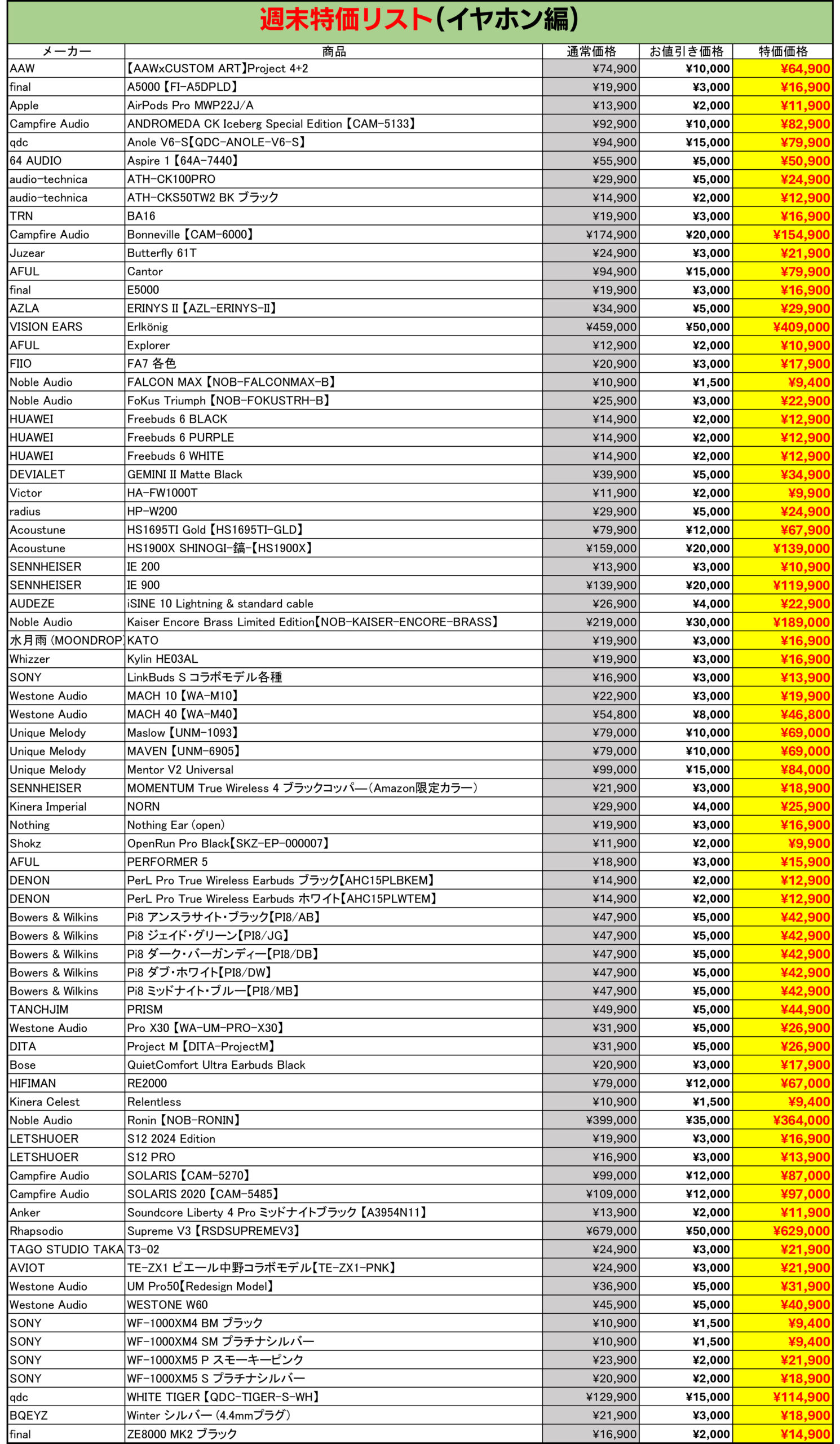 今週もe☆イヤホンの中古週末特価を開催!お得な製品が盛り沢山な内容でお送りします