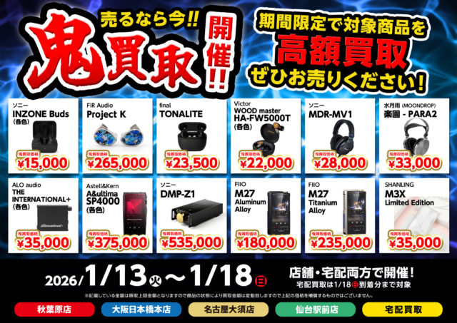 使わなくなったオーディオ機器、眠らせたままになっていませんか?今回の記事では久々の開催となったお得な買取キャンペーン情報をお届け。週替わりでラインナップが変わる“鬼買取“今週の高価買取対象アイテムをご紹介しますぞ!