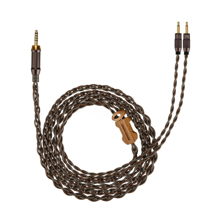 Egretケーブルには約1.8mの2重シールド設計、エナメル加工金メッキ銅と銀メッキ銅、古河電工製OFCを使用した3重複合材4芯線を特別採用しています。この3重複合構造により解像度の向上と、音響ディテールの豊かで安定した表現を実現。ケーブルの内層はグラフェン強化PVC構造を採用し、絶縁体と電磁波シールドの両方の役割を果たし、外層は銅編組メッシュ、銀メッキ銅編組メッシュ、および耐久性のあるPVCジャケットを組み合わせています。この2重シールド設計により、引張強度と耐久性が大幅に向上すると同時に、極めてロスの少ない信号伝送を可能にします。ヘッドホン側コネクターには接続安定性の高い3.5mm×2を採用。ケーブルのプラグ部には4.4mmバランスプラグを採用し、4.4mm to 3.5mm変換ショートケーブルと3.5mm to 6.35mm変換プラグ、付属品用麻布ポーチと堅牢なレザーキャリングケースが付属します。