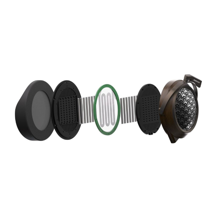 Egretのドライバーには、最新のナノスケール複合ダイアフラム(振動板)を使用した98mm×84mmプラナーマグネティックドライバーを搭載しています。800ナノメートル未満の厚さの磁性切削層を備えた革新的なサンドイッチ構造が、応答速度と解像度を向上させ、よりリアルな音の細部の再現を可能にします。独自のEB(電子ビーム)蒸着法を使用し、ナノスケールの振動板表面にアルミニウム回路を精密にコーティングすることで、より明確な階層構造と安定した周波数特性を実現しています。