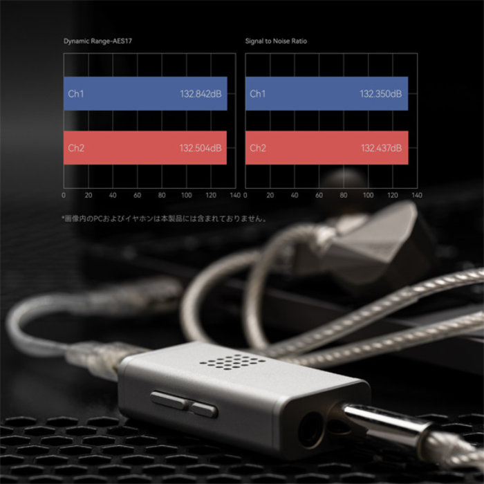 | ダイナミックレンジ(A-wt) 132dB@1kHz イヤホンジャック 3.5mm ステレオミニプラグ/4.4mm バランス接続プラグ THD+N 0.00014%@1kHz 出力 124+124mW@16Ω THD+N<1% 出力振幅 4.1Vrms@0dBFS |