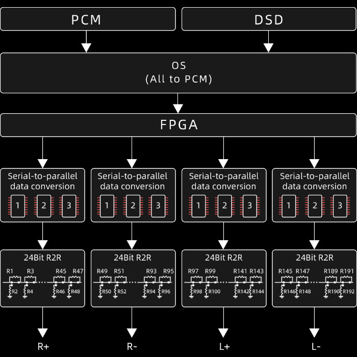 CD再生全盛期のサウンドを実現する、独自開発のフルバランス24bit R2R DAC回路
