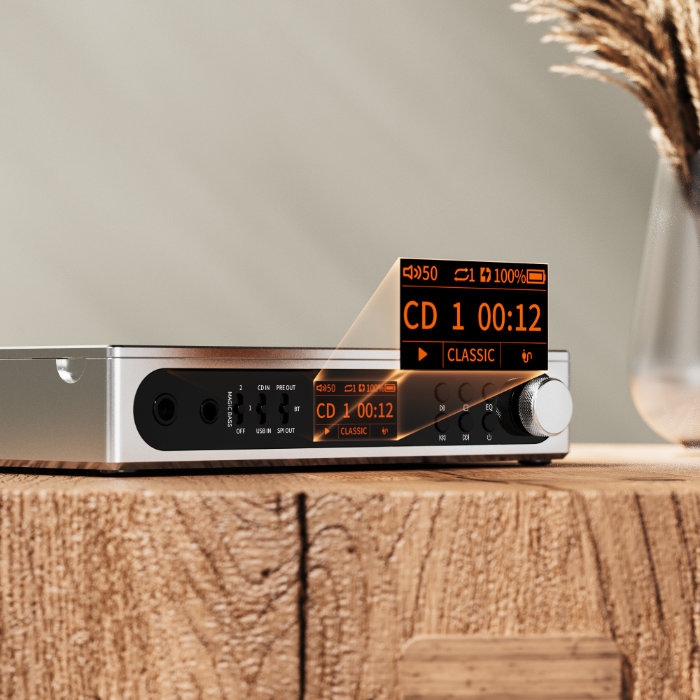 レトロなUIテーマのHD TFTディスプレイを搭載し、モダンとヴィンテージのスタイルを融合させ、スタイリッシュさと使いやすさを兼ね備えたデザインを採用しています。バッテリー残量、動作モード、EQ設定、サンプリングレート、Bluetooth接続リストなどの情報を分かりやすく直感的に表示し、簡単操作で音楽に没入することができます。