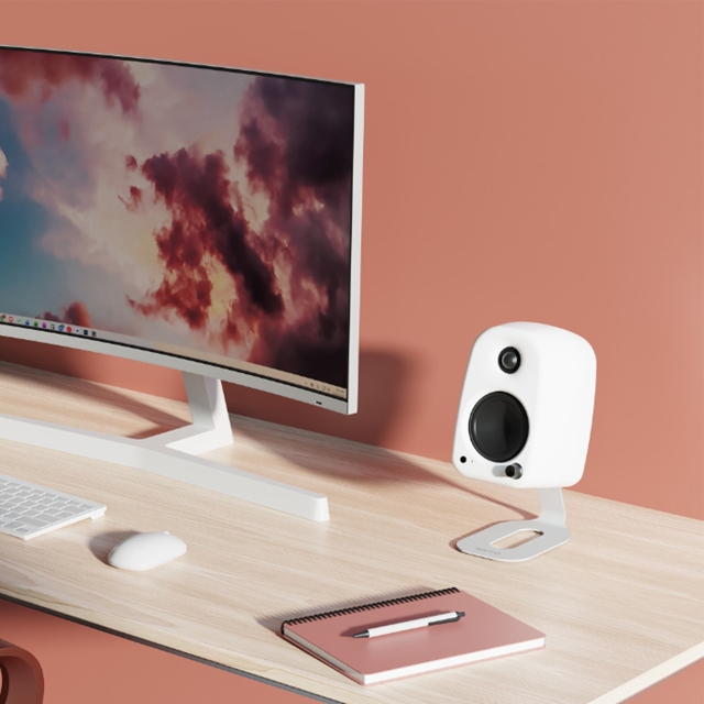 付属の1/4”-20ネジにより、スピーカー背面へシームレスに取り付けが可能。デスク上のスペースを有効活用し、すっきりとした美しい設置を実現します。