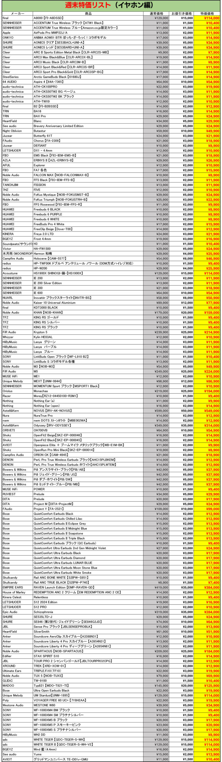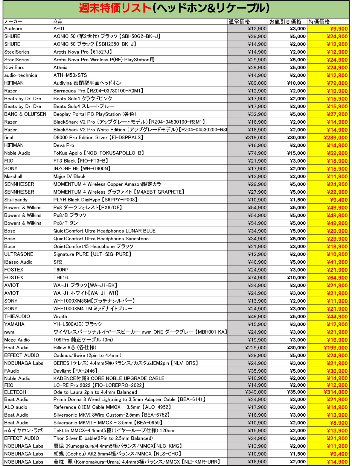 今週もe☆イヤホンの中古週末特価を開催!お得な製品が盛り沢山な内容でお送りします