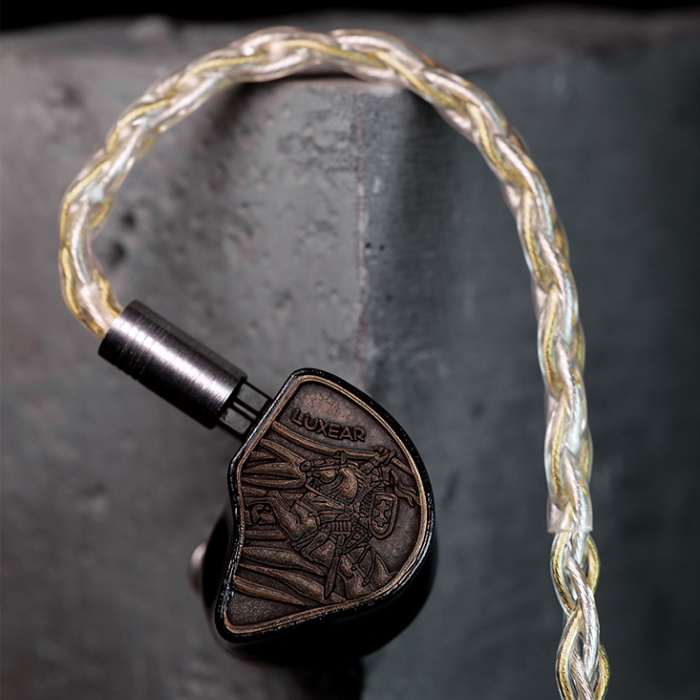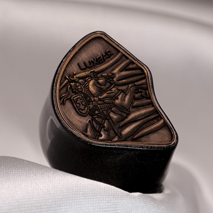 フェイスプレートには厳選された「真鍮(ブラス)」を採用。5軸CNCマシンによる精密な彫刻と、職人の手作業によるエイジングを施すことで、温かみを感じさせながらも、時間を重ねたような重厚なヴィンテージ感を演出しています。その中央に刻まれたのは、誇り高き「騎士」の紋章。硬質で洗練されたラインが描くその意匠は、未知なる音の旅へと赴くValorが追求する世界観を象徴しています。Valorは、音楽を聴くための道具であることにとどまらず、造形美と個性を備えた、所有する歓びを感じさせる存在として仕上げられています。シェルには医療グレードの樹脂を使用し、3Dプリント技術によって成形しています。内部配線は、熟練したエンジニアが手作業ではんだ付けを行っています。