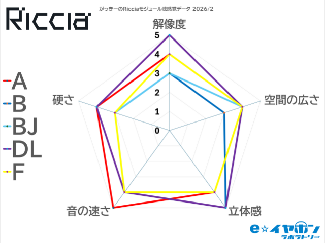 | Ricciaアンプモジュールがっきー聞感覚データ | ||||||