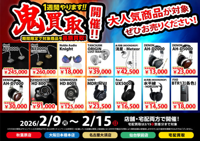 使わなくなったオーディオ機器、眠らせたままになっていませんか?今回の記事では久々の開催となったお得な買取キャンペーン情報をお届け。週替わりでラインナップが変わる“鬼買取“今週の高価買取対象アイテムをご紹介しますぞ!