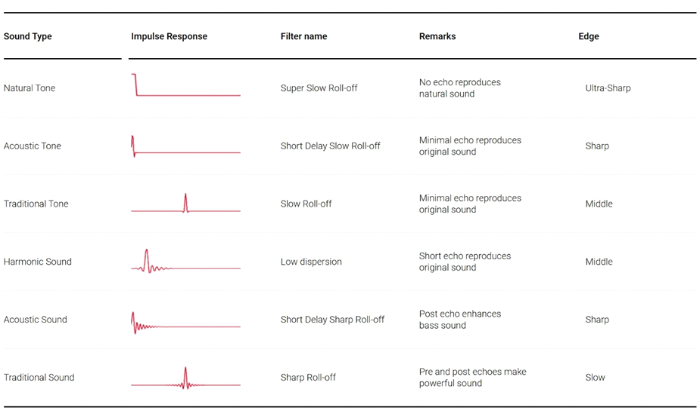 <ご注意>DACフィルターはイコライザー機能とは異なります。周波数特性上のサウンド傾向の変化はないため、非常に微細な調整となり、体感は個人差があります。