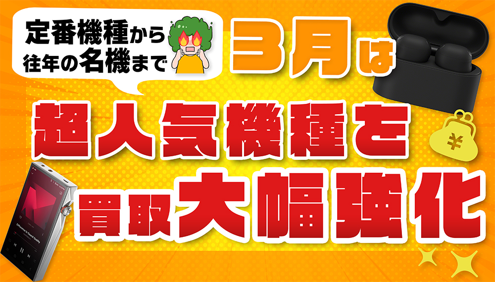 今月のWANTEDでは、超人気機種の買取価格を大幅強化! 定番のハイエンドモデルから往年のレジェンド機まで、専門店であるe☆イヤホンが価値をしっかりと見極め高額査定いたします。