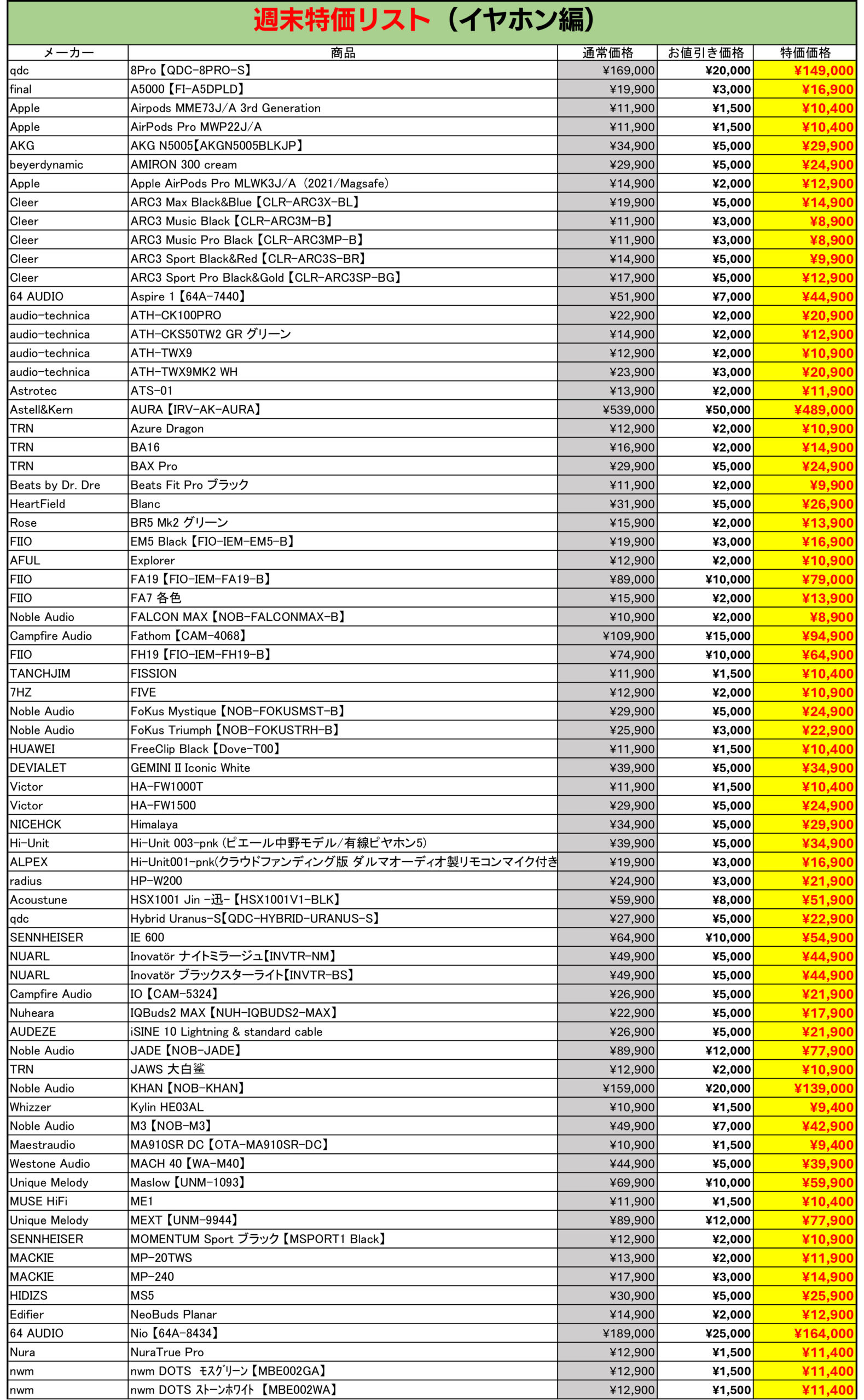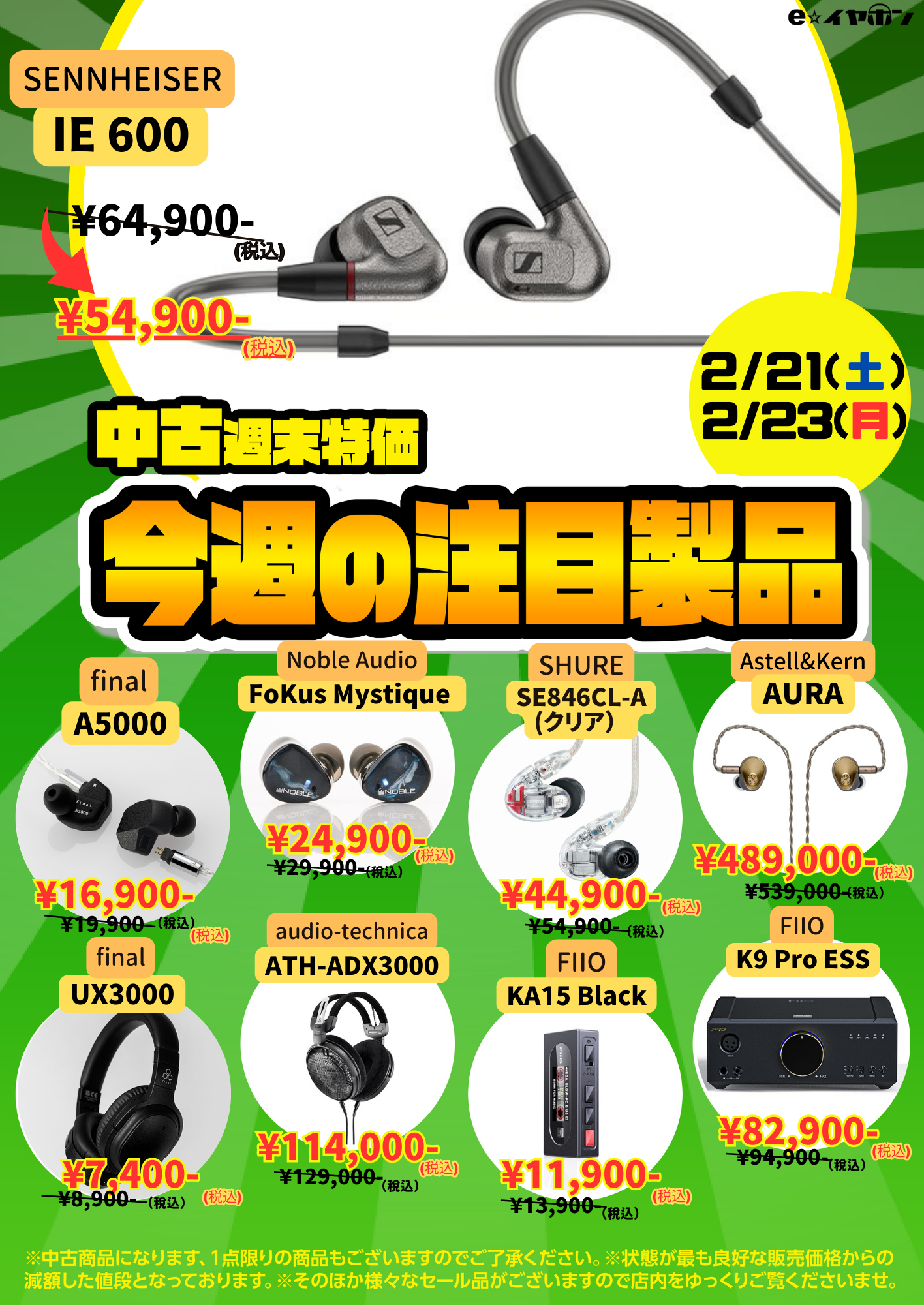 今週もe☆イヤホンの中古週末特価を開催!お得な製品が盛り沢山な内容でお送りします